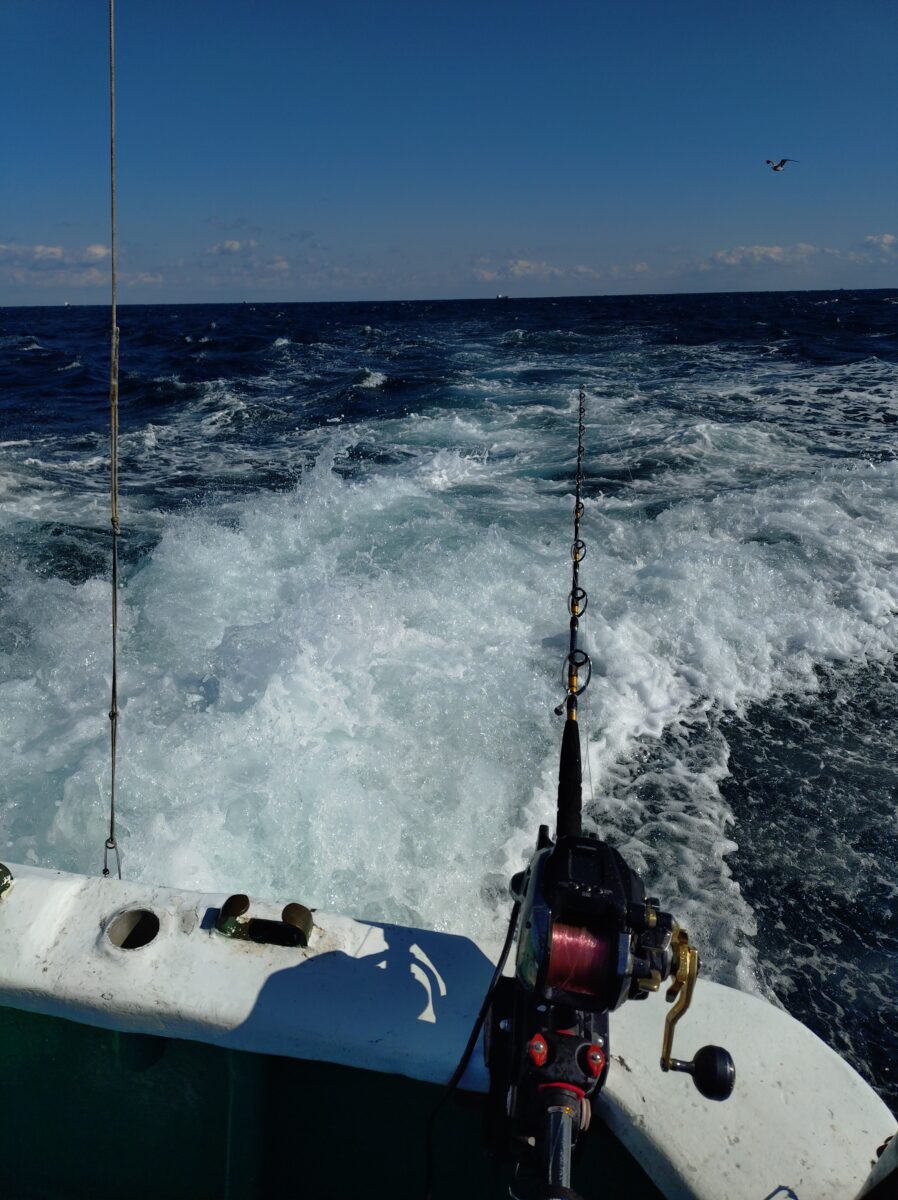 北西の風が強く吹く予報やったので岬沖ではなく古座から勝浦沖での釣行でした。