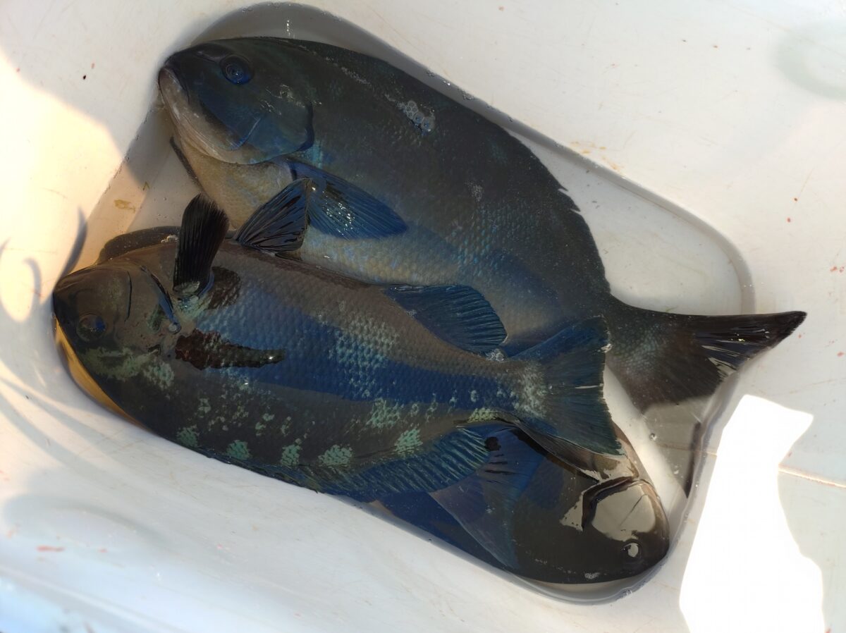 今年の樫野は黒潮が接岸している影響か大きな尾長グレが良く釣れており今回も何度かバチバチ切られましたが40㌢近いサイズが釣れてくれました✨